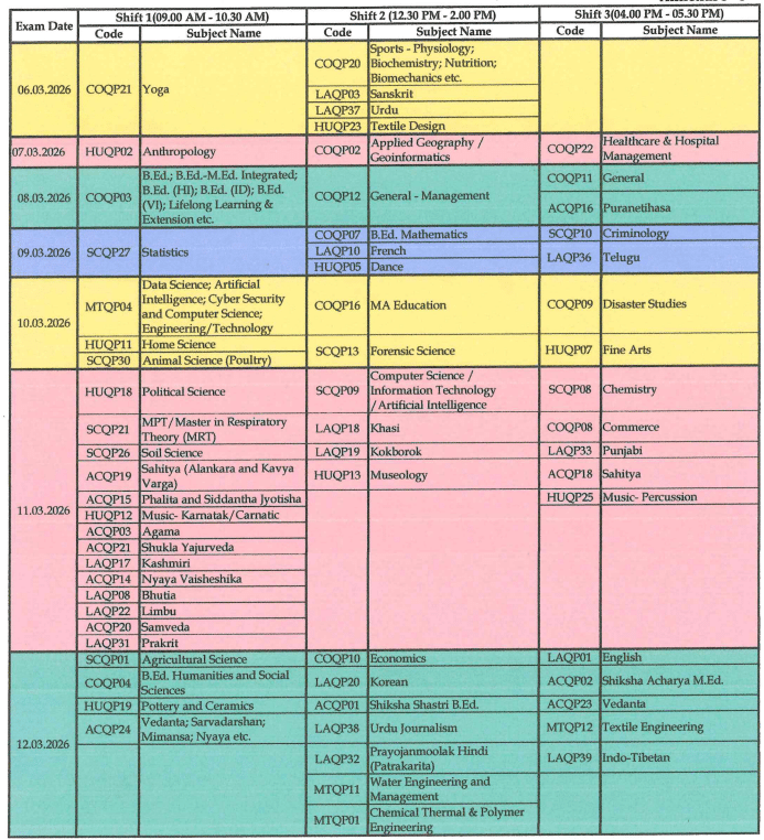 | CUET PG Exam Date 2026 | 6, 7, 8, 9, 10, 11, 12, 13, 16, 17, 18,19, 24, 25 and March 27, 2026 |
